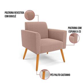 O Sofá Namoradeira e 2 Poltronas Marisa é a escolha perfeita para quem deseja unir conforto e comodidade em um estilo elegante. Com um design único, ele possui Pés Palito Castanho que harmoniza com o seu belíssimo tom Rosê, criando uma combinação elegante de conforto e estilo. Ele é perfeito para quem busca móveis que não só sejam bonitos, mas que também proporcionem bem-estar. Ideal para compor salas de estar, recepções, bibliotecas, salas de leitura, espaços de design e até áreas comerciais, essa peça versátil é pensada para ambientes que excluam beleza e aconchego. Sua estrutura, em madeira de reflorestamento de eucalipto, oferece resistência e sustentabilidade, suportando até 180 kg, garantindo segurança para usuários de diferentes biotipos. O conforto é outro destaque, com estofado em espuma prorelax D-23, que proporciona suporte e maciez ideais. Revestido em Bouclê, um tecido maleável e sofisticado, Sofá Namoradeira e 2 Poltronas Marisa segue a tendência do momento com um toque suave e quente, remetendo à textura natural da lã. Leve e fácil de transportar, Sofá Namoradeira e 2 Poltronas é um item que agrega charme e durabilidade ao seu espaço. Não perca a oportunidade de adquirir essa peça exclusiva que fará toda a diferença na sua decoração e no seu bem-estar. Aproveite agora! OBSERVAÇÃO IMPORTANTE: A é realizada no informado, não realizamos o para andares superiores, como subir escadas, elevadores ou guinchos. Não realizamos montagens, desmontagens ou instalações. Todos esses serviços são de responsabilidade do comprador. Dimensões do Sofá Namoradeira: Altura Total: 81 cm Largura Total: 114 cm Profundidade Total: 64 cm Altura do Encosto: 64 cm Largura do Assento: 96 cm Profundidade do Assento: 48 cm Altura do chão ao Assento: 45 cm Espessura do Braço: 9 cm Altura interna do Braço: 20 cm Espessura do Assento: 18 cm Tamanho dos pés: 30 cm Peso: 20 kg Dimensões do Poltrona: Altura Total: 81 cm Largura Total: 64 cm Profundidade Total: 64 cm Altura do Encosto: 36 cm Largura do Assento: 47 cm Profundidade do Assento: 48 cm Altura do chão ao Assento: 45 cm Espessura do Braço: 9 cm Altura interna do Braço: 20 cm Espessura do Assento: 18 cm Tamanho dos pés: 30 cm Peso: 14 kg Especificações do Produto: Estrutura: Madeira de Reflorestamento de Eucalipto Espuma: D-23 Tecido: Bouclê Peso Suportado: Até 180 Kg Tipo de Pés: Pés Palito de Madeira Tipo de Encosto: Fixo Tipo de Assento: Fixo Complexidade da Montagem: Baixo Montagem: O produto vai montado, apenas rosquear os pés : 90 dias contra de fabricação Instruções de Limpeza: Utilizar um pano limpo e levemente úmido Você irá Receber: 01 Sofá Namoradeira e 02 Poltronas - Entregue em: 03 Volumes