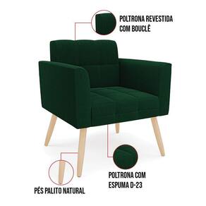 O Sofá Namoradeira e 2 Poltronas Elisa é uma mobília que combina elegância, conforto e durabilidade. Ele tem um design retrô e sofisticado, com Pés Palito Natural e revestimento em tecido Bouclê Verde, que harmonizam com qualquer ambiente. Ele é ideal para sala de estar, recepções, escritórios, cozinhas ou qualquer outro espaço que você queira decorar com estilo e bom gosto. Ele tem uma estrutura em madeira de reflorestamento eucalipto, que garante a resistência e a sustentabilidade do produto. Ele suporta até 180 kg de peso, podendo ser utilizada por pessoas de diferentes biotipos. Ele tem um acabamento reforçado e espuma de qualidade D23, que oferece maciez e aconchego. Ele contém detalhes de costura no encosto e assento, resultando em um acabamento impecável, conferindo muito mais valor e elegância ao produto. O Sofá Namoradeira e 2 Poltronas Elisa é um móvel de alta qualidade, beleza e funcionalidade. Ele é fácil de transportar, pois tem um peso leve e um tamanho compacto. O Sofá Namoradeira e 2 Poltronas Elisa é um produto que vai fazer a diferença na sua decoração e no seu bem-estar. Ele vai trazer charme, conforto e durabilidade para o seu ambiente. Aproveite essa oferta e leve para casa um Sofá Namoradeira e 2 Poltronas de qualidade por um preço incrível. Essa é a sua chance de ter um Sofá Namoradeira e 2 Poltronas maravilhoso por um preço imperdível. Corra e garanta o seu antes que acabe o estoque!