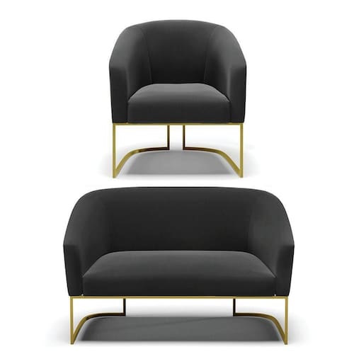 O Sofá Namoradeira 2 lugares com Poltrona Stella é uma peça que combina elegância, conforto e durabilidade. Este conjunto tem um design moderno e sofisticado, com Base Industrial Dourado e revestimento em tecido Suede Preto, que harmonizam com qualquer ambiente. Ele é ideal para sala de estar, recepções, mesa de jantar ou qualquer outro espaço que você queira decorar com estilo e bom gosto. Ele tem uma estrutura em madeira de reflorestamento eucalipto, que garante a resistência e a sustentabilidade do produto. Ele suporta até 120 kg de peso, podendo ser utilizado por pessoas de diferentes biotipos. Ele tem um acabamento reforçado e espuma de qualidade D23, que oferece maciez e aconchego. Tem pés em aço carbono e pintura eletrostática, que protegem o produto contra corrosão e desgaste. Ele tem assento com persintas elásticas, que proporcionam flexibilidade e conforto. O kit Stella é um produto de alta qualidade, beleza e funcionalidade. Ele é fácil de transportar, pois tem um peso leve e um tamanho compacto. O Sofá Namoradeira 2 lugares com Poltrona Stella é um produto que vai fazer a diferença na sua decoração e no seu bem-estar. Ele vai trazer charme, conforto e durabilidade para o seu ambiente. Aproveite essa oferta e leve para casa um Sofá Namoradeira 2 lugares com Poltrona qualidade por um preço incrível. Essa é a sua chance de ter um kit maravilhoso por um preço imperdível. Corra e garanta seu Sofá Namoradeira 2 lugares com Poltrona antes que acabe o estoque!