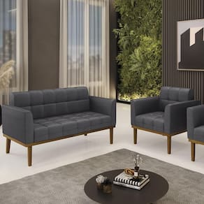 A Namoradeira e Poltrona Base Madeira Castanho Ana Bouclé Grafite, da Ibiza é o conjunto ideal para quem busca beleza, conforto e versatilidade. Você pode usar na sua Sala De Estar, recepção ou qualquer outro ambiente que desejar.