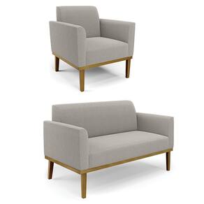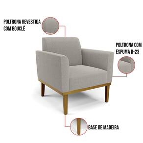 Namoradeira e Poltrona Base Madeira Castanho Marisa Bouclê D03 - D`Rossi - Cinza