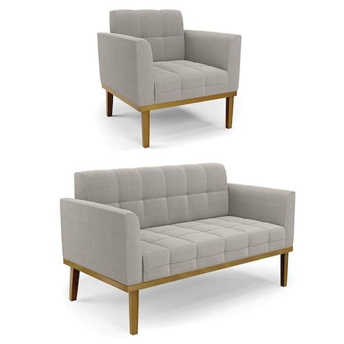 O Sofá Namoradeira e Poltrona Elisa é uma mobília que combina elegância, conforto e durabilidade. Ele tem um design retrô e sofisticado, com Base de Madeira Fixa Castanho e revestimento em tecido Bouclê ACinza, que harmonizam com qualquer ambiente. Ele é ideal para sala de estar, recepções, escritórios, cozinhas ou qualquer outro espaço que você queira decorar com estilo e bom gosto. Ele tem uma estrutura em madeira de reflorestamento eucalipto, que garante a resistência e a sustentabilidade do produto. Ele suporta até 180 kg de peso, podendo ser utilizada por pessoas de diferentes biotipos. Ele tem um acabamento reforçado e espuma de qualidade D23, que oferece maciez e aconchego. Ele contém detalhes de costura no encosto e assento, resultando em um acabamento impecável, conferindo muito mais valor e elegância ao produto. O Sofá Namoradeira e Poltrona Elisa é um móvel de alta qualidade, beleza e funcionalidade. Ele é fácil de transportar, pois tem um peso leve e um tamanho compacto. O Sofá Namoradeira e Poltrona Elisa é um produto que vai fazer a diferença na sua decoração e no seu bem-estar. Ele vai trazer charme, conforto e durabilidade para o seu ambiente. Aproveite essa oferta e leve para casa um Sofá Namoradeira e Poltrona de qualidade por um preço incrível. Essa é a sua chance de ter um Sofá Namoradeira e Poltrona maravilhoso por um preço imperdível. Corra e garanta o seu antes que acabe o estoque!