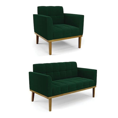 O Sofá Namoradeira e Poltrona Elisa é uma mobília que combina elegância, conforto e durabilidade. Ele tem um design retrô e sofisticado, com Base de Madeira Fixa Castanho e revestimento em tecido Bouclê Verde, que harmonizam com qualquer ambiente. Ele é ideal para sala de estar, recepções, escritórios, cozinhas ou qualquer outro espaço que você queira decorar com estilo e bom gosto. Ele tem uma estrutura em madeira de reflorestamento eucalipto, que garante a resistência e a sustentabilidade do produto. Ele suporta até 180 kg de peso, podendo ser utilizada por pessoas de diferentes biotipos. Ele tem um acabamento reforçado e espuma de qualidade D23, que oferece maciez e aconchego. Ele contém detalhes de costura no encosto e assento, resultando em um acabamento impecável, conferindo muito mais valor e elegância ao produto. O Sofá Namoradeira e Poltrona Elisa é um móvel de alta qualidade, beleza e funcionalidade. Ele é fácil de transportar, pois tem um peso leve e um tamanho compacto. O Sofá Namoradeira e Poltrona Elisa é um produto que vai fazer a diferença na sua decoração e no seu bem-estar. Ele vai trazer charme, conforto e durabilidade para o seu ambiente. Aproveite essa oferta e leve para casa um Sofá Namoradeira e Poltrona de qualidade por um preço incrível. Essa é a sua chance de ter um Sofá Namoradeira e Poltrona maravilhoso por um preço imperdível. Corra e garanta o seu antes que acabe o estoque!