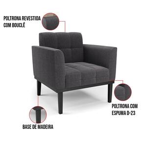 Namoradeira e Poltrona Base Madeira Fixa Pto Elisa Bouclê D03 - D`Rossi - Grafite