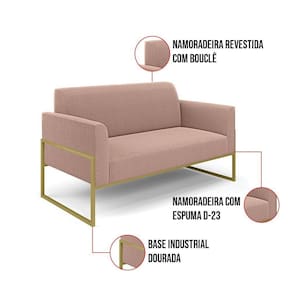 O Sofá Namoradeira e Poltrona Marisa é a escolha perfeita para quem deseja unir conforto e comodidade em um estilo elegante. Com um design único, ele possui uma Base Industrial Alta em Metal Dourado que harmoniza com o seu belíssimo tom Rosê, criando uma combinação elegante de conforto e estilo. Ele é perfeito para quem busca móveis que não só sejam bonitos, mas que também proporcionem bem-estar. Ideal para compor salas de estar, recepções, bibliotecas, salas de leitura, espaços de design e até áreas comerciais, essa peça versátil é pensada para ambientes que excluam beleza e aconchego. Sua estrutura, em madeira de reflorestamento de eucalipto, oferece resistência e sustentabilidade, suportando até 180 kg, garantindo segurança para usuários de diferentes biotipos. O conforto é outro destaque, com estofado em espuma prorelax D-23, que proporciona suporte e maciez ideais. Revestido em Bouclê, um tecido maleável e sofisticado, Sofá Namoradeira e Poltrona Marisa segue a tendência do momento com um toque suave e quente, remetendo à textura natural da lã. Leve e fácil de transportar, o Sofá Namoradeira e Poltrona é um item que agrega charme e durabilidade ao seu espaço. Não perca a oportunidade de adquirir essa peça exclusiva que fará toda a diferença na sua decoração e no seu bem-estar. Aproveite agora!OBSERVAÇÃO IMPORTANTE: A é realizada no informado, não realizamos o para andares superiores, como subir escadas, elevadores ou guinchos. Não realizamos montagens, desmontagens ou instalações. Todos esses serviços são de responsabilidade do comprador. Dimensões do Sofá Namoradeira: Altura Total: 81 cm Largura Total: 114 cm Profundidade Total: 64 cm Altura do Encosto: 36 cm Largura do Assento: 96 cm Profundidade do Assento: 48 cm Altura do chão ao Assento: 45 cm Espessura do Braço: 9 cm Altura interna do Braço: 20 cm Espessura do Assento: 18 cm Tamanho dos pés: 30 cm Peso: 20 kg Dimensões do Poltrona: Altura Total: 81 cm Largura Total: 64 cm Profundidade Total: 64 cm Altura do Encosto: 36 cm Largura do Assento: 47 cm Profundidade do Assento: 48 cm Altura do chão ao Assento: 45 cm Espessura do Braço: 9 cm Altura interna do Braço: 20 cm Espessura do Assento: 18 cm Tamanho dos pés: 30 cm Peso: 16 kg Especificações do Produto: Estrutura: Madeira de Reflorestamento de Eucalipto Espuma: D-23 Tecido: Bouclê Peso Suportado: Até 180 Kg Tipo de Pés: Base Industrial Alta Tipo de Encosto: Fixo Tipo de Assento: Fixo Complexidade da Montagem: Baixo Montagem: O produto vai montado, apenas parafusar a base : 90 dias contra de fabricação Instruções de Limpeza: Utilizar um pano limpo e levemente úmido Você irá Receber: 01 Sofá Namoradeira e 01 Poltrona - Entregue em: 02 Volumes