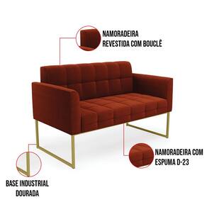 O Sofá Namoradeira e Poltrona Elisa é uma mobília que combina elegância, conforto e durabilidade. Ele tem um design retrô e sofisticado, com Base Industrial Dourada e revestimento em tecido Bouclê Terra, que harmonizam com qualquer ambiente. Ele é ideal para sala de estar, recepções, escritórios, cozinhas ou qualquer outro espaço que você queira decorar com estilo e bom gosto. Ele tem uma estrutura em madeira de reflorestamento eucalipto, que garante a resistência e a sustentabilidade do produto. Ele suporta até 180 kg de peso, podendo ser utilizada por pessoas de diferentes biotipos. Ele tem um acabamento reforçado e espuma de qualidade D23, que oferece maciez e aconchego. Ele contém detalhes de costura no encosto e assento, resultando em um acabamento impecável, conferindo muito mais valor e elegância ao produto. O Sofá Namoradeira e Poltrona Elisa é um móvel de alta qualidade, beleza e funcionalidade. Ele é fácil de transportar, pois tem um peso leve e um tamanho compacto. O Sofá Namoradeira e Poltrona Elisa é um produto que vai fazer a diferença na sua decoração e no seu bem-estar. Ele vai trazer charme, conforto e durabilidade para o seu ambiente. Aproveite essa oferta e leve para casa um Sofá Namoradeira e Poltrona de qualidade por um preço incrível. Essa é a sua chance de ter um Sofá Namoradeira e Poltrona maravilhoso por um preço imperdível. Corra e garanta o seu antes que acabe o estoque!