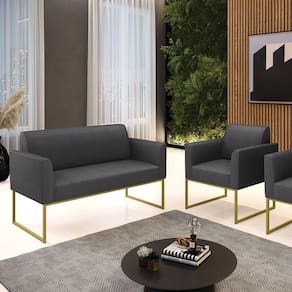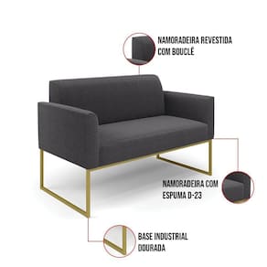 O Sofá Namoradeira e Poltrona Marisa é a escolha perfeita para quem deseja unir conforto e comodidade em um estilo elegante. Com um design único, ele possui uma Base Industrial em Metal Dourado que harmoniza com o seu belíssimo tom Grafite, criando uma combinação elegante de conforto e estilo. Ele é perfeito para quem busca móveis que não só sejam bonitos, mas que também proporcionem bem-estar. Ideal para compor salas de estar, recepções, bibliotecas, salas de leitura, espaços de design e até áreas comerciais, essa peça versátil é pensada para ambientes que excluam beleza e aconchego. Sua estrutura, em madeira de reflorestamento de eucalipto, oferece resistência e sustentabilidade, suportando até 180 kg, garantindo segurança para usuários de diferentes biotipos. O conforto é outro destaque, com estofado em espuma prorelax D-23, que proporciona suporte e maciez ideais. Revestido em Bouclê, um tecido maleável e sofisticado, Sofá Namoradeira e Poltrona Marisa segue a tendência do momento com um toque suave e quente, remetendo à textura natural da lã. Leve e fácil de transportar, o Sofá Namoradeira e Poltrona é um item que agrega charme e durabilidade ao seu espaço. Não perca a oportunidade de adquirir essa peça exclusiva que fará toda a diferença na sua decoração e no seu bem-estar. Aproveite agora!OBSERVAÇÃO IMPORTANTE: A é realizada no informado, não realizamos o para andares superiores, como subir escadas, elevadores ou guinchos. Não realizamos montagens, desmontagens ou instalações. Todos esses serviços são de responsabilidade do comprador. Dimensões do Sofá Namoradeira: Altura Total: 81 cm Largura Total: 114 cm Profundidade Total: 64 cm Altura do Encosto: 36 cm Largura do Assento: 96 cm Profundidade do Assento: 48 cm Altura do chão ao Assento: 45 cm Espessura do Braço: 9 cm Altura interna do Braço: 20 cm Espessura do Assento: 18 cm Tamanho dos pés: 30 cm Peso: 20 kg Dimensões do Poltrona: Altura Total: 81 cm Largura Total: 64 cm Profundidade Total: 64 cm Altura do Encosto: 36 cm Largura do Assento: 47 cm Profundidade do Assento: 48 cm Altura do chão ao Assento: 45 cm Espessura do Braço: 9 cm Altura interna do Braço: 20 cm Espessura do Assento: 18 cm Tamanho dos pés: 30 cm Peso: 16 kg Especificações do Produto: Estrutura: Madeira de Reflorestamento de Eucalipto Espuma: D-23 Tecido: Bouclê Peso Suportado: Até 180 Kg Tipo de Pés: Base Industrial Tipo de Encosto: Fixo Tipo de Assento: Fixo Complexidade da Montagem: Baixo Montagem: O produto vai montado, apenas parafusar a base : 90 dias contra de fabricação Instruções de Limpeza: Utilizar um pano limpo e levemente úmido Você irá Receber: 01 Sofá Namoradeira e 01 Poltrona - Entregue em: 02 Volumes