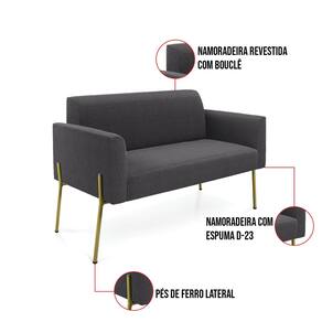 O Sofá Namoradeira e Poltrona Marisa é a escolha perfeita para quem deseja unir conforto e comodidade em um estilo elegante. Com um design único, ele possui Pés de Ferro Lateral Dourado que harmoniza com o seu belíssimo tom Grafite, criando uma combinação elegante de conforto e estilo. Ele é perfeito para quem busca móveis que não só sejam bonitos, mas que também proporcionem bem-estar. Ideal para compor salas de estar, recepções, bibliotecas, salas de leitura, espaços de design e até áreas comerciais, essa peça versátil é pensada para ambientes que excluam beleza e aconchego. Sua estrutura, em madeira de reflorestamento de eucalipto, oferece resistência e sustentabilidade, suportando até 180 kg, garantindo segurança para usuários de diferentes biotipos. O conforto é outro destaque, com estofado em espuma prorelax D-23, que proporciona suporte e maciez ideais. Revestido em Bouclê, um tecido maleável e sofisticado, Sofá Namoradeira e Poltrona Marisa segue a tendência do momento com um toque suave e quente, remetendo à textura natural da lã. Leve e fácil de transportar, o Sofá Namoradeira e Poltrona é um item que agrega charme e durabilidade ao seu espaço. Não perca a oportunidade de adquirir essa peça exclusiva que fará toda a diferença na sua decoração e no seu bem-estar. Aproveite agora e garanta o seu antes que o estoque acabe!