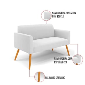 O Sofá Namoradeira e Poltrona Marisa é a escolha perfeita para quem deseja unir conforto e comodidade em um estilo elegante. Com um design único, ele possui Pés Palito Castanho que harmoniza com o seu belíssimo tom Off White, criando uma combinação elegante de conforto e estilo. Ele é perfeito para quem busca móveis que não só sejam bonitos, mas que também proporcionem bem-estar. Ideal para compor salas de estar, recepções, bibliotecas, salas de leitura, espaços de design e até áreas comerciais, essa peça versátil é pensada para ambientes que excluam beleza e aconchego. Sua estrutura, em madeira de reflorestamento de eucalipto, oferece resistência e sustentabilidade, suportando até 180 kg, garantindo segurança para usuários de diferentes biotipos. O conforto é outro destaque, com estofado em espuma prorelax D-23, que proporciona suporte e maciez ideais. Revestido em Bouclê, um tecido maleável e sofisticado, Sofá Namoradeira e Poltrona Marisa segue a tendência do momento com um toque suave e quente, remetendo à textura natural da lã. Leve e fácil de transportar, o Sofá Namoradeira e Poltrona é um item que agrega charme e durabilidade ao seu espaço. Não perca a oportunidade de adquirir essa peça exclusiva que fará toda a diferença na sua decoração e no seu bem-estar. Aproveite agora!