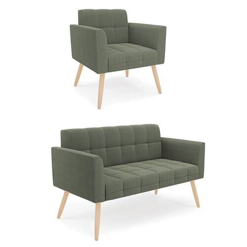 Namoradeira E Poltrona Pé Palito Natural Elisa Bouclê D03 - D?rossi Cor Verde Pistache O Sofá Namoradeira e Poltrona Elisa é uma mobília que combina elegância, conforto e durabilidade. Ele tem um design retrô e sofisticado, com Pés Palito Natural e revestimento em tecido Bouclê. Ele é ideal para sala de estar, recepções, escritórios, cozinhas ou qualquer outro espaço que você queira decorar com estilo e bom gosto. Ele tem uma estrutura em madeira de reflorestamento eucalipto, que garante a resistência e a sustentabilidade do produto. Ele suporta até 180 kg de peso, podendo ser utilizada por pessoas de diferentes biotipos. Ele tem um acabamento reforçado e espuma de qualidade D23, que oferece maciez e aconchego. Ele contém detalhes de costura no encosto e assento, resultando em um acabamento impecável, conferindo muito mais valor e elegância ao produto. O Sofá Namoradeira e Poltrona Elisa é um móvel de alta qualidade, beleza e funcionalidade. Ele é fácil de transportar, pois tem um peso leve e um tamanho compacto. O Sofá Namoradeira e Poltrona Elisa é um produto que vai fazer a diferença na sua decoração e no seu bem-estar. Ele vai trazer charme, conforto e durabilidade para o seu ambiente. Aproveite essa e leve para casa um Sofá Namoradeira e Poltrona de qualidade por um preço incrível. Essa é a sua chance de ter um Sofá Namoradeira e Poltrona maravilhoso por um preço imperdível. Corra e garanta o seu antes que acabe o estoque! Dimensões da Poltrona: Altura Total: 81 cm Largura Total: 64 cm Profundidade Total: 64 cm Altura do Encosto: 36 cm Largura do Assento: 47 cm Profundidade do Assento: 48 cm Altura do chão ao Assento: 45 cm Espessura do Assento: 18 cm Espessura do braço: 9 cm Altura interna do braço: 20 cm Tamanho dos pés: 30 cm Peso: 14 kg Dimensões da Namoradeira: Altura Total: 81 cm Largura Total: 114 cm Profundidade Total: 64 cm Altura do Encosto: 36 cm Largura do Assento: 96 cm Profundidade do Assento: 48 cm Altura do chão ao Assento: 45 cm Espessura do Assento: 18 cm Espessura do braço: 9 cm Altura interna do braço: 20 cm Tamanho dos pés: 30 cm Peso: 22 kg Especificações do Produto: Estrutura: Madeira Eucalipto Espuma: D-23 Tecido: Bouclê Peso Suportado: Até 180 Kg Tipo de Pés: Pés Palito Natural Tipo de Encosto: Fixo Tipo de Assento: Fixo Complexidade da Montagem: Baixo Montagem: O produto vai montado, apenas rosquear os pés Garantia: 90 dias contra de fabricação Instruções de Limpeza: Utilizar um pano limpo e levemente úmido Você irá Receber: 01 Sofá Namoradeira e 01 Poltrona - Entregue em: 02 Volumes