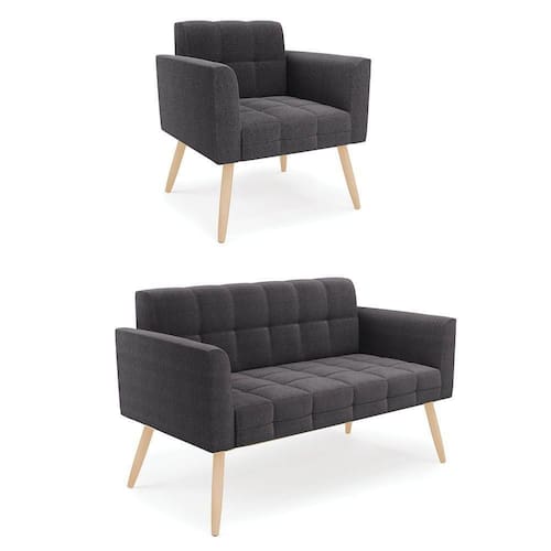 O Sofá Namoradeira e Poltrona Elisa é uma mobília que combina elegância, conforto e durabilidade. Ele tem um design retrô e sofisticado, com Pés Palito Natural e revestimento em tecido Bouclê Grafite, que harmonizam com qualquer ambiente. Ele é ideal para sala de estar, recepções, escritórios, cozinhas ou qualquer outro espaço que você queira decorar com estilo e bom gosto. Ele tem uma estrutura em madeira de reflorestamento eucalipto, que garante a resistência e a sustentabilidade do produto. Ele suporta até 180 kg de peso, podendo ser utilizada por pessoas de diferentes biotipos. Ele tem um acabamento reforçado e espuma de qualidade D23, que oferece maciez e aconchego. Ele contém detalhes de costura no encosto e assento, resultando em um acabamento impecável, conferindo muito mais valor e elegância ao produto. O Sofá Namoradeira e Poltrona Elisa é um móvel de alta qualidade, beleza e funcionalidade. Ele é fácil de transportar, pois tem um peso leve e um tamanho compacto. O Sofá Namoradeira e Poltrona Elisa é um produto que vai fazer a diferença na sua decoração e no seu bem-estar. Ele vai trazer charme, conforto e durabilidade para o seu ambiente. Aproveite essa oferta e leve para casa um Sofá Namoradeira e Poltrona de qualidade por um preço incrível. Essa é a sua chance de ter um Sofá Namoradeira e Poltrona maravilhoso por um preço imperdível. Corra e garanta o seu antes que acabe o estoque!