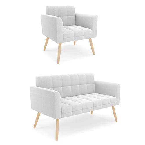 O Sofá Namoradeira e Poltrona Elisa é uma mobília que combina elegância, conforto e durabilidade. Ele tem um design retrô e sofisticado, com Pés Palito Natural e revestimento em tecido Bouclê Off White, que harmonizam com qualquer ambiente. Ele é ideal para sala de estar, recepções, escritórios, cozinhas ou qualquer outro espaço que você queira decorar com estilo e bom gosto. Ele tem uma estrutura em madeira de reflorestamento eucalipto, que garante a resistência e a sustentabilidade do produto. Ele suporta até 180 kg de peso, podendo ser utilizada por pessoas de diferentes biotipos. Ele tem um acabamento reforçado e espuma de qualidade D23, que oferece maciez e aconchego. Ele contém detalhes de costura no encosto e assento, resultando em um acabamento impecável, conferindo muito mais valor e elegância ao produto. O Sofá Namoradeira e Poltrona Elisa é um móvel de alta qualidade, beleza e funcionalidade. Ele é fácil de transportar, pois tem um peso leve e um tamanho compacto. O Sofá Namoradeira e Poltrona Elisa é um produto que vai fazer a diferença na sua decoração e no seu bem-estar. Ele vai trazer charme, conforto e durabilidade para o seu ambiente. Aproveite essa oferta e leve para casa um Sofá Namoradeira e Poltrona de qualidade por um preço incrível. Essa é a sua chance de ter um Sofá Namoradeira e Poltrona maravilhoso por um preço imperdível. Corra e garanta o seu antes que acabe o estoque!