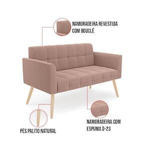 O Sofá Namoradeira e Poltrona Elisa é uma mobília que combina elegância, conforto e durabilidade. Ele tem um design retrô e sofisticado, com Pés Palito Natural e revestimento em tecido Bouclê Rosê, que harmonizam com qualquer ambiente. Ele é ideal para sala de estar, recepções, escritórios, cozinhas ou qualquer outro espaço que você queira decorar com estilo e bom gosto. Ele tem uma estrutura em madeira de reflorestamento eucalipto, que garante a resistência e a sustentabilidade do produto. Ele suporta até 180 kg de peso, podendo ser utilizada por pessoas de diferentes biotipos. Ele tem um acabamento reforçado e espuma de qualidade D23, que oferece maciez e aconchego. Ele contém detalhes de costura no encosto e assento, resultando em um acabamento impecável, conferindo muito mais valor e elegância ao produto. O Sofá Namoradeira e Poltrona Elisa é um móvel de alta qualidade, beleza e funcionalidade. Ele é fácil de transportar, pois tem um peso leve e um tamanho compacto. O Sofá Namoradeira e Poltrona Elisa é um produto que vai fazer a diferença na sua decoração e no seu bem-estar. Ele vai trazer charme, conforto e durabilidade para o seu ambiente. Aproveite essa oferta e leve para casa um Sofá Namoradeira e Poltrona de qualidade por um preço incrível. Essa é a sua chance de ter um Sofá Namoradeira e Poltrona maravilhoso por um preço imperdível. Corra e garanta o seu antes que acabe o estoque!