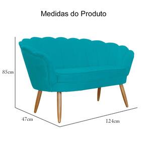Namoradeira Estofada 2 Lugares Para Sala Comercial Pétala Suede Azul Turquesa - LM DECOR