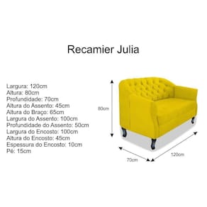 Gostaria de um móvel que trouxesse mais elegância e sofisticação para o seu lar? A Namoradeira Julia A02 é sua melhor opção! Com característica moderna e com acabamento de qualidade, este produto atenderá suas expectativas! Não perca essa oportunidade e adquira já a sua!Especificações Técnicas da Namoradeira Julia A02: - Altura: 80 cm;- Largura Total: 120 cm;- Profundidade: 70 cm;- Peso: 35 Kg;- Peso Suportado: 120 Kg;Diferenciais da Namoradeira Julia A02: - Design Moderno;- Detalhes em Botonê;- Detalhes do Pé: acompanham pés de madeira de alta resistência;Recomendações de limpeza: -Limpar com flanela limpa e seca. Não molhar o móvel e não expor em lugar úmido ou próximo de fontes de calor. Não usar produtos abrasivos.Observações Importantes: - As imagens ambientadas são meramente ilustrativas e podem apresentar itens que não compõe o produto;- Objetos decorativos que aparecem na foto não acompanham o produto;- As cores do produto podem variar de acordo com o monitor, a iluminação do ambiente, ou sua percepção visual;- A Namoradeira Julia A02 chegará montado para você, bastando encaixar os pés;- Confira as dimensões antes da compra e certifique-se de que o produto passará por elevadores, portas e corredores;- Ao receber seus produtos, verifique no ato do recebimento qualquer dano na embalagem;- Produto para uso residencial em ambiente interno, não devendo ficar exposto diretamente ao sol, calor e umidades excessivas.