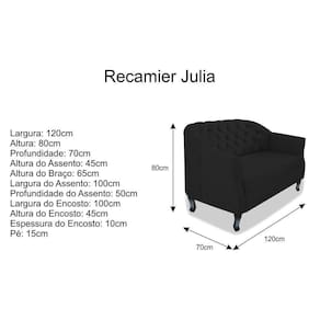Gostaria de um móvel que trouxesse mais elegância e sofisticação para o seu lar? A Namoradeira Julia A02 é sua melhor opção! Com característica moderna e com acabamento de qualidade, este produto atenderá suas expectativas! Não perca essa oportunidade e adquira já a sua!Especificações Técnicas da Namoradeira Julia A02: - Altura: 80 cm;- Largura Total: 120 cm;- Profundidade: 70 cm;- Peso: 35 Kg;- Peso Suportado: 120 Kg;Diferenciais da Namoradeira Julia A02: - Design Moderno;- Detalhes em Botonê;- Detalhes do Pé: acompanham pés de madeira de alta resistência;Recomendações de limpeza: -Limpar com flanela limpa e seca. Não molhar o móvel e não expor em lugar úmido ou próximo de fontes de calor. Não usar produtos abrasivos.Observações Importantes: - As imagens ambientadas são meramente ilustrativas e podem apresentar itens que não compõe o produto;- Objetos decorativos que aparecem na foto não acompanham o produto;- As cores do produto podem variar de acordo com o monitor, a iluminação do ambiente, ou sua percepção visual;- A Namoradeira Julia A02 chegará montado para você, bastando encaixar os pés;- Confira as dimensões antes da compra e certifique-se de que o produto passará por elevadores, portas e corredores;- Ao receber seus produtos, verifique no ato do recebimento qualquer dano na embalagem;- Produto para uso residencial em ambiente interno, não devendo ficar exposto diretamente ao sol, calor e umidades excessivas.