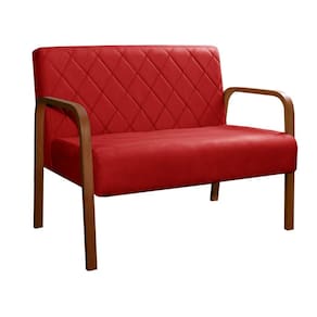 Namoradeira Lara Sofá 2 Lugares Braço Madeira Bella Decor - Vermelho