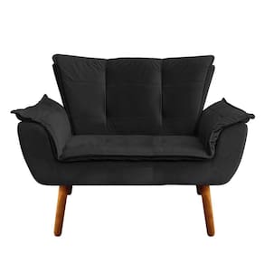 Namoradeira Opala Veludo Preto Pés Palito Castanho - D'Rossi
