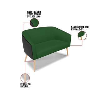A Namoradeira Stella além de linda vem com um design moderno. Ideal para comportar duas pessoas. Projetada para fornecer segurança, bem-estar e aconchego para quem se assentar. Com um acabamento rico em detalhes, o tecido em Corano Preto e Veludo no tom Verde Luxo A136, no seu encosto e no assento é composta por espuma mais densa D-23. Os pés são em palito de madeira natural, tornando o móvel ainda mais resistente. Ela combina com qualquer decoração. Fala aí se não é uma ótima oportunidade!! Escolha a sua namoradeira Stella e crie uma decoração romântica, perfeita para casais apaixonados desfrutarem um tempo juntos.