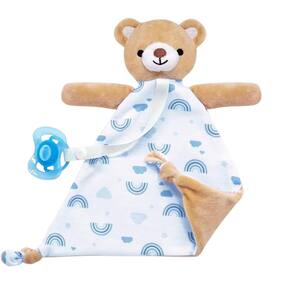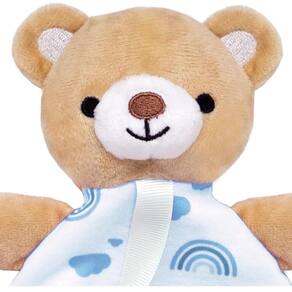 Características Marca: Buba Modelo: Naninha com Prendedor de Chupeta Urso Azul Tamanho: 30 cm Idade Recomendada: A partir de 3 meses Composição: 100% Poliester Chupeta não inclusa