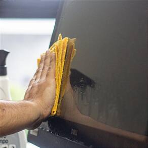 Espalhe com pano de microfibra seco e limpo em movimentos circulares.;