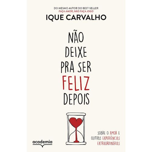 Aproveite os pequenos momentos de alegria. São eles que tornam a vida bonita. Não deixe para ser feliz depois é um mergulho profundo na força do que é a própria vida. De forma singela, mas muito potente, Ique Carvalho e sua mãe, Lu Carvalho, diagnosticada com uma doença delicada, nos retratam com sinceridade o dia a dia da busca pelo amor, da procura pelo sentido e do empenho em manter a esperança. Um retrato extraordinário do que o amor é feito: nunca desistir e continuar procurando todos os dias a alegria em nossas vidas. Neste novo livro do autor best-seller de Faça amor, não faça jogo, os diálogos de Ique e sua mãe, bem como os sentimentos que transbordam das reflexões dele, nos inspiram a continuar e a acreditar.