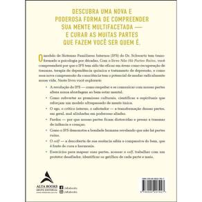 O modelo de Sistemas Familiares Internos (IFS) do Dr. Schwartz tem transformado a psicologia por décadas. A revolução do IFS ensina como respeitar e se comunicar com nossas várias partes e como subverter as premissas culturais, científicas e espirituais que reforçam um modelo ultrapassado de mente única. Descubra uma nova e poderosa forma de compreender sua mente multifacetada — e curar as muitas partes que fazem você ser quem é. O modelo de Sistemas Familiares Internos (IFS) do Dr. Schwartz tem transformado a psicologia por décadas. Com o livro Não Há Partes Ruins, você compreenderá por que o IFS tem sido tão eficaz em áreas como recuperação de traumas, terapia de dependência química e tratamento de depressão, e como essa nova compreensão da consciência tem o potencial de mudar radicalmente nossa vida. Neste livro você explorará: A revolução do IFS — como respeitar e se comunicar com nossas partes altera nossa abordagem ao bem-estar mental. Como subverter as premissas culturais, científicas e espirituais que reforçam um modelo ultrapassado de mente única. O ego, o crítico interno, o sabotador — a transformação dessas partes, em geral, mal alinhadas em poderosas aliadas. Fardos — por que nossas partes ficam distorcidas e presas a traumas de infância e crenças. Como o IFS demonstra a bondade humana revelando que não há partes ruins. O self — a descoberta de sua essência sábia e compassiva do bem, que é fonte de cura e harmonia. Exercícios para mapear suas partes, acessar o self, trabalhar com um protetor desafiador, identificar os gatilhos de cada parte e mais.