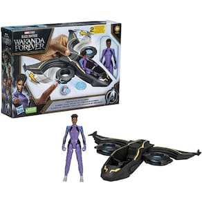 Princesa de Wakanda e cientista líder do Wakandan Design Group, Shuri será forçada a superar a dor da perda de seu irmão TChalla quando as fronteiras de Wakanda forem violadas por uma ameaça inesperada Ajudar a salvar o mundo e proteger Wakanda com este brinquedo Vibranium Blast Sunbird e a figura de 15 cm de Shuri!