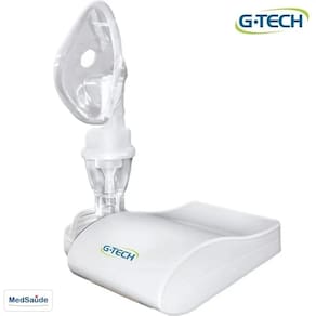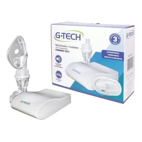 O Nebulizador G-TECH Compact DC1 possui design supercompacto e leve, facilitando o uso cotidiano e em situações de viagem.