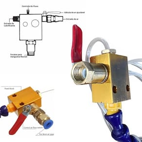 Nebulizador Lubrificador Pulverizador Pneumático Para Cnc Router Torno Fresa Usinagem Serra Fita Dispositivo para Aplicação de Fluidos de Corte ou Estampagem por Pulverização/Nebulização, Usando Mínima Quantidade de Lubrificantes, com uma Saída de Mangueira para Direcionamento do Fluido. Oferece Economia de Até 50% no Consumo de Fluidos para Usinagem. Características Produto de Ótima Qualidade e Acabamento Melhora a Velocidade de Corte e Acabamento Superficial Acabamento Superior em Corte, Perfuração, Rosqueamento, de Refrigeração e Lubrificação. Maior Refrigeração com Lubrificação Exata para a Operação. Aumenta a Vida Útil de Aresta de Corte, Melhora Precisão na Usinagem. Diminuir a Tempo de Operação e Processo. Elimina a Operação de Descarte de Óleos . Fácil de Instalar. Basta Conectar Ar Comprimido 0,5 a 4,0 bar , Regular as Válvulas de Fluido e de Ar Comprimido e Ajustar os Tubos Flexíveis para Levar o Fluido em Forma de Névoa Até a Região de Corte. Simples, Robusto, Preciso e Sem Peças Móveis. Uso: Direto com Fluido de Corte / Óleo de Corte Rosqueamento / Óleo Solúvel. Atentando Sempre Quanto à Viscosidade do Óleo Nebulizador Deve ser Abaixo 68 cSt. Aplicação Indicado para Operações como: Máquinas de Usinagem, Retifica, Perfuração, Torneamento, Fresagem, Mandrilhamento, Rosqueamento, Furação, Alargamento, Estampagem e Outras Operações Onde Ótima Lubrificação e Refrigeração são Fundamentais. Apropriados para Altas Velocidades Corte CNC e Houter . Máquinas Operatrizes que Trabalham com Ferramenta Única ou com Poucas Trocas de Ferramentas Durante a Operação e com Adição Direta do Fluido na Ferramenta. Para Utilizar em Furadeiras de Bancada; Serra fita MR-105 Com Adaptação. Ideal para Empresa de Usinagem e Automação, TCC e Hobistas. Código/ modelo: Lubrificante Spray Marca: All Werk Especificação Técnica Tamanho da Mangueira Articulada: 30cm Tamanho da Mangueira Transparente: 1mt Adaptador Tubo de Ar: 8mm Uso: Arrefecimento para Pedra, Metal, Cerâmica e Outros Serviços Pressão Máxima: 5-7 kgf/cm2 Viscosidade do Óleo Nebulizador: Abaixo 68 cSt Material: Plástico, Latão e Metal Obs.: Não Use com Líquidos Corrosivos. Imagens Meramente Ilustrativas. Todas as Informações Divulgadas São de Responsabilidade do Fabricante/Fornecedor
