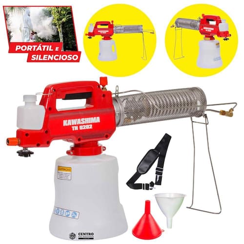 O nebulizador térmico Kawashima TN 0202 é um equipamento robusto para o controle de pragas e uso agrícola em sítios, fazendas e chácaras. Utiliza como combustível gás metano, butano ou propano (não acompanha lata de gás). Pode ser usado em áreas externas, aplicação de defensivos agrícolas, fumigação em armazens e sílos de estocagem e proteção contra geadas. Combate também insetos transmissores de doenças como dengue, zica, chikungunya e malária.
