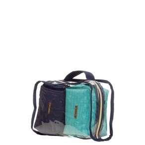 Necessaire 3 Peças - Turquesa e Marinho é mais uma linda opção para o seu cotidiano. Produzido em poliéster, um material resistente. Possui fechamento em zíper e organizador interno para você manter tudo sempre organizado. Além disso, tem 2 compartimentos e ainda acompanha pingente. Marca: Não Informado