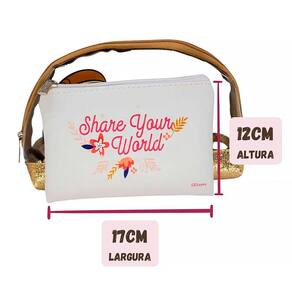- Dimensões aprox. do produto: Bolsa 16cm altura x 23,5cm comprimento | Necessaire 12cm altura x 17cm comprimento
