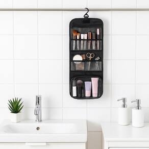 Várias Divisórias: Possui múltiplos compartimentos para armazenar produtos de higiene pessoal, acessórios, cosméticos, panos, toalhas, depilatórios, produtos para cabelo, entre outros.