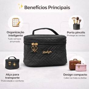 A Necessaire com Alça e Organizador de Pincéis Rubys Necf-112b é perfeita para viagens, permitindo que você leve seus itens essenciais de beleza de forma compacta e segura. É ideal também para organizar bancadas de maquiagem em casa ou no salão, mantendo o ambiente arrumado. Além disso, é uma excelente opção para presentear amigas e familiares que valorizam a organização e a praticidade em seu dia a dia. Essencial para profissionais da beleza e entusiastas que valorizam a organização e a praticidade em seu dia a dia.