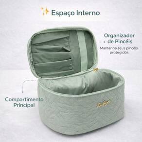 Utilize o compartimento principal para armazenar cosméticos, produtos de skincare e acessórios maiores. Encaixe seus pincéis de maquiagem nos elásticos do organizador interno para mantê-los seguros, visíveis e protegidos. Use a alça para transportar sua necessaire com conforto e segurança, garantindo que seus itens estejam sempre com você. Organize seus produtos de forma estratégica para otimizar o espaço e facilitar o acesso aos seus itens favoritos.