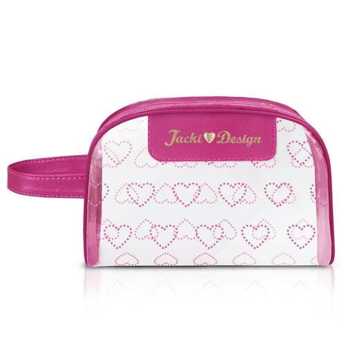 A necessaire com alça da coleção LOVE combina um design elegante e feminino, com detalhes românticos de corações. Feita de material transparente em PVC, facilita a visualização dos itens armazenados, além de ser impermeável e fácil de limpar. Possui amplo espaço interno para organização eficiente, detalhes em couro sintético, tag da marca e fecho em zíper para segurança dos seus pertences. Ideal para uso diário ou viagens. As necessaires da coleção LOVE complementam perfeitamente as malas e frasqueiras da mesma linha.