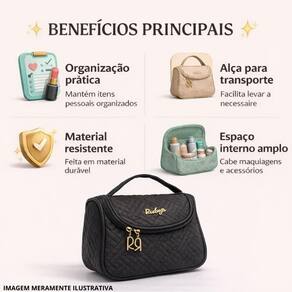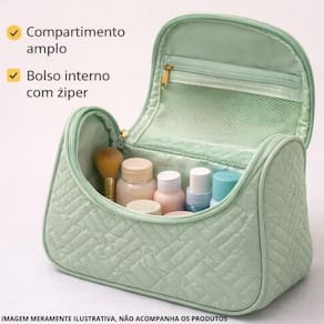Utilize para armazenar e transportar maquiagens, produtos de higiene, acessórios e outros pequenos objetos, mantendo-os protegidos e acessíveis. Organize seus itens de forma estratégica para otimizar o espaço interno.