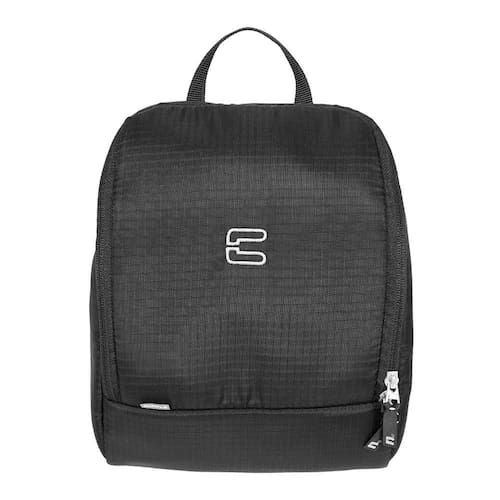 Cor: Preto Composição: Poliamida Alça superior de mão Compartimento principal com ampla abertura Compartimento para escovas e creme dental Espelho interno removível Dois frascos 60ml para shampoo e condicionador Fita com gancho Bolso interno em mesh Divisórias organizacionais Bolso externo traseiro com fecho em zíper Capacidade: 5 L