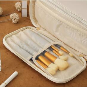 Características do produto: Altura: 15,5cm Largura: 28cm Comprimento: 16cm Peso: 300g Material: PU Design de grande abertura para fácil acesso aos cosméticos. 3 bolsos e 3 compartimentos internos para organização eficiente. Zíper suave e prático para fácil manuseio. Material PU de alta qualidade, resistente e fácil de limpar. Tamanho amplo para cosméticos, pincéis e produtos de higiene. Ideal para viagens e uso diário. Combina praticidade com estilo elegante.