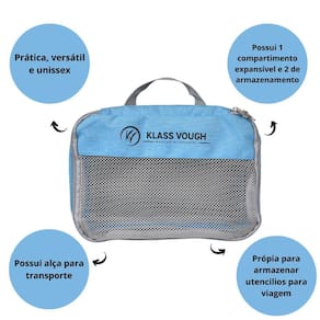 A Necessaire multiuso azul Klass Vough é prática, versátil e unissex, podendo ser utilizada para armazenar qualquer coisa que deseje, e principalmente para ser carregada em sua viagem. Necessaire de viagem com 1 compartimento expansível e 2 de armazenamento, para acomodar tudo o que precisar. Possui alça para transporte.