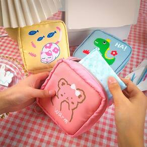 A Necessaire Feminina Porta Absorvente Cosméticos Pequeno Estampa Bichinhos Fofos é a solução perfeita para você Seu companheiro ideal para manter tudo organizado e estiloso