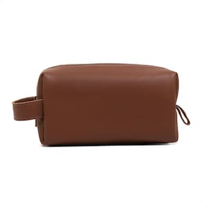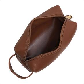 Necessaire Grande Em Couro Lisa Porta Objetos Viagem Fechamento Zíper Maquiagem Higiene Pessoal - Marrom - Único