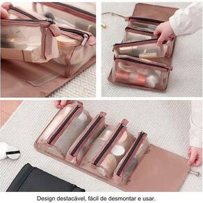 O fechamento com elástico garante que tudo fique seguro e no lugar durante o transporte. Esta necessaire é durável, resistente e fácil de limpar. Seu design elegante e funcional faz dele um item indispensável para qualquer viagem, proporcionando conforto e tranquilidade ao manter sua mala organizada e seus pertences protegidos.