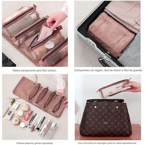 O fechamento com elástico garante que tudo fique seguro e no lugar durante o transporte. Esta necessaire é durável, resistente e fácil de limpar. Seu design elegante e funcional faz dele um item indispensável para qualquer viagem, proporcionando conforto e tranquilidade ao manter sua mala organizada e seus pertences protegidos.