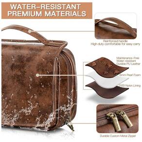 MATERIAL PREMIUM RESISTENTE À ÁGUA Feito de couro PU resistente à água, espuma perolada de e forro de nylon 210D um zíper de metal personalizado oferece melhor proteção para os produtos na bolsa. Pode ser com segurança mesmo em locais úmidos, como banheiros, piscinas e fontes termais
