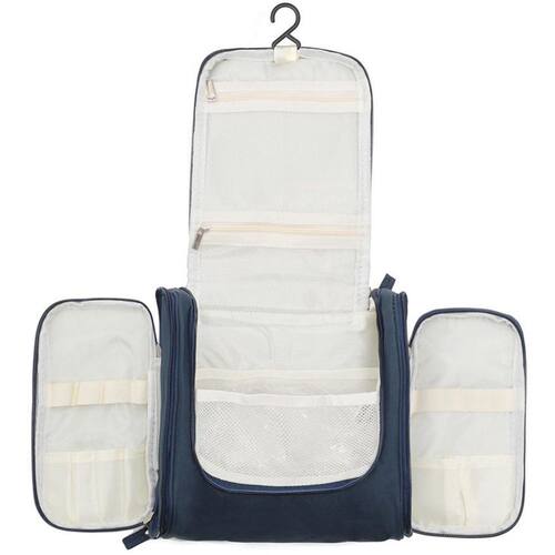 Uma excelente necessaire organizadora, que pode ser usada para viagem viagem ou mesmo para o dia a dia, com ela seus produtos ficam protegidos e organizados, com divisórias de tamanhos variados permite a organização de diversos tamanhos de produto de higiene pessoal, maquiagem e pinceis, escova de cabelo etc... Com cabide para pendurar; Contém 11 divisórias internas e 2 divisórias externas