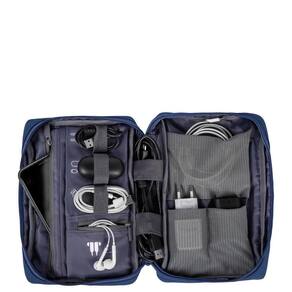 A Necessaire Organizadora de Cabos e Acessórios Eletrônicos Azul-Marinho é perfeita para manter seus itens organizados com praticidade e segurança. Feita em ABS, possui organizador interno, divisórias inteligentes, elásticos para cabos e bolso em feltro para celular, além de um bolso frontal com zíper para fácil acesso. Ideal para proteger e organizar seus acessórios eletrônicos em qualquer ocasião.