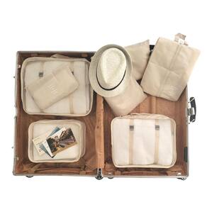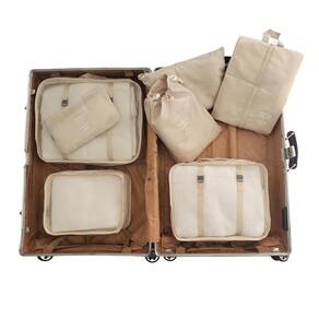 Necessaire organizador para mala de viagem kit com 7 peças cor bege