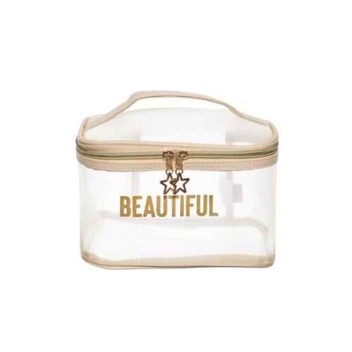 Necessaire Qualis Transparente Letras em Dourado NS2310 Necessaire Qualis transparente, coisas de diva, espaçosa e muito util para viagens de todos os tipos